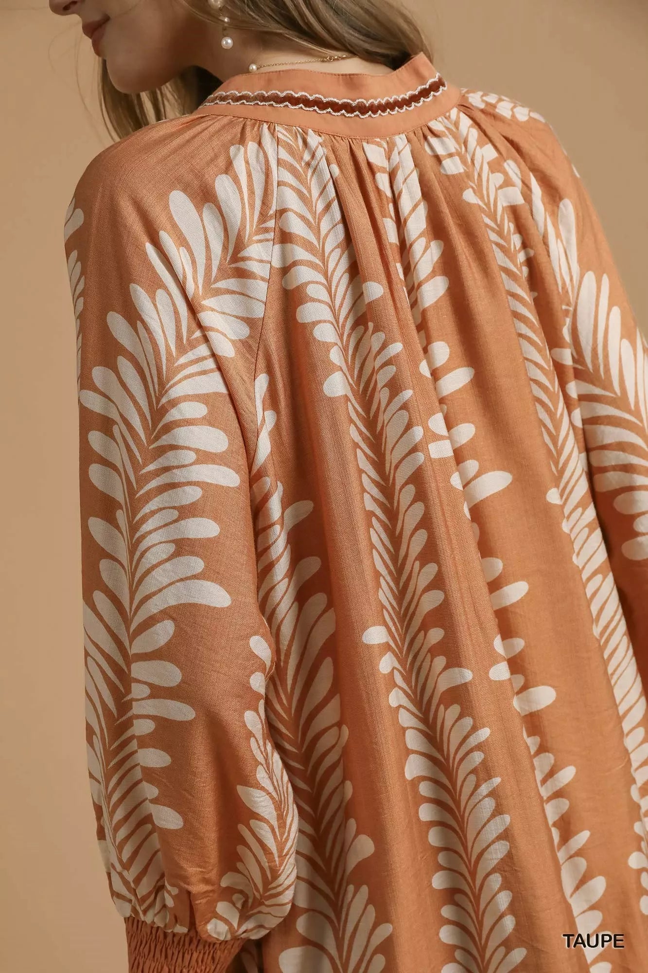 Umgee Leaf Print Notched Mini Babydoll Dress