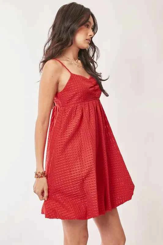 Davi & Dani Textured Sweetheart Neckline Bubble Hem Dress