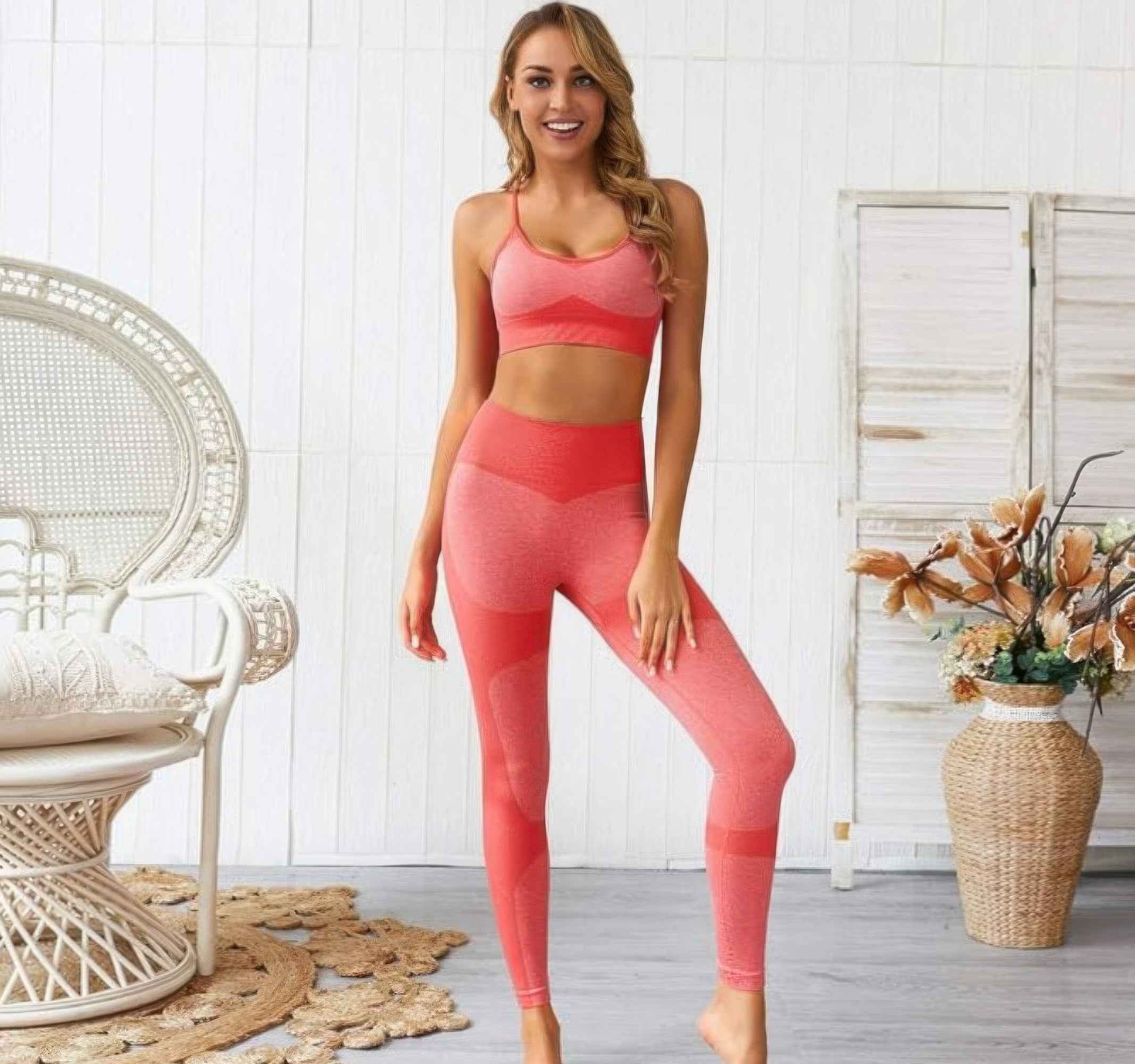Streamlined and supportive, this seamless activewear two-piece set is designed to move with you from warm-up to wind-down. The crop tank top features a flattering solid design with a stylish cross-back for added support and breathability. Paired with high-waisted leggings, this set hugs your curves with a smooth, sculpted fit. Made from a stretchy blend of nylon and spandex, it offers flexibility, comfort, and a second-skin feel. Perfect for workouts, yoga, or casual athleisure days, this set blends function with clean, minimal style.