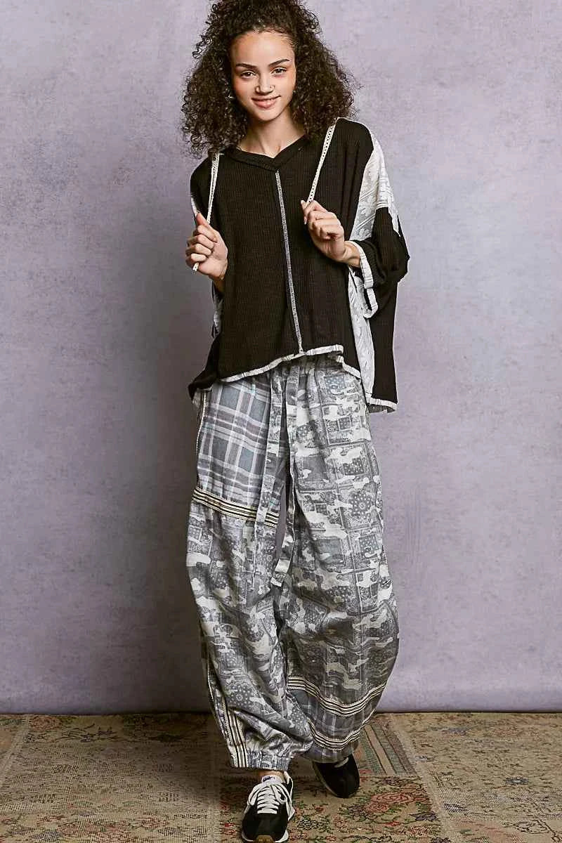 This V-neck short sleeve relaxed fit basic airy hoodie top is designed with intricate details for a stylish and modern look. The ribbed texture and lace patch trim add a delicate and feminine touch to the hoodie. The design features a unique hoodie loop, outseam and overlock stitch point, and panel opening point for added interest and dimension. The vintage washing gives the top a lived-in feel, creating a casual and laid-back vibe. Available in a solid color, this hoodie top is versatile and perfect for both casual outings and lounging at home.