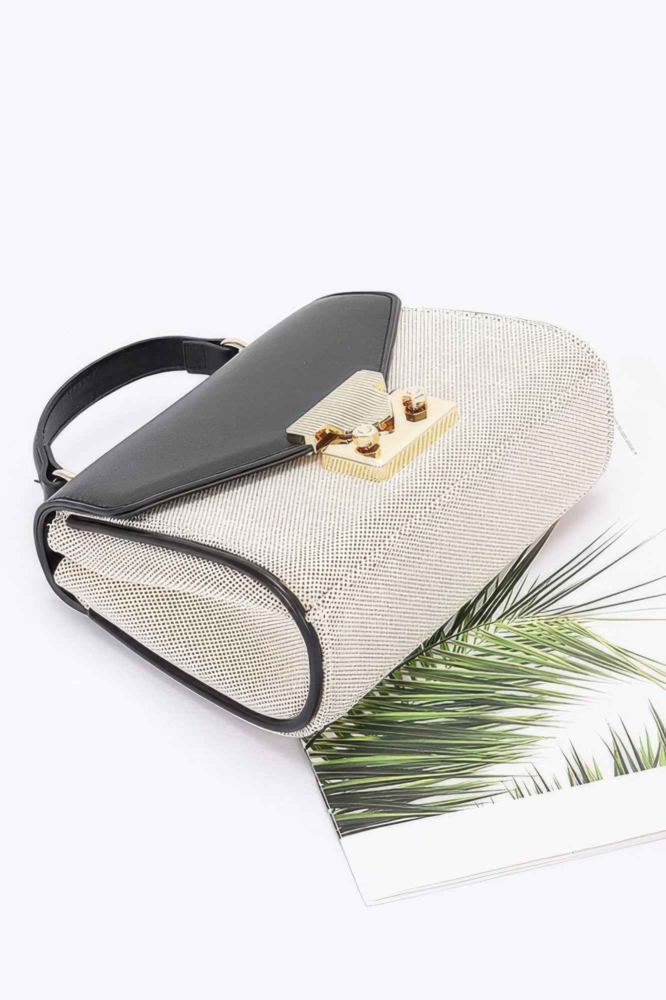 Discover effortless style with the Canvas Top Handle Flap Bag, a sophisticated handbag that blends fashion and function. Crafted from high-quality canvas and accented with mixed metal details, this chic accessory is perfect for the modern woman on the go. Timeless yet practical, it's the ideal finishing touch for any ensemble.